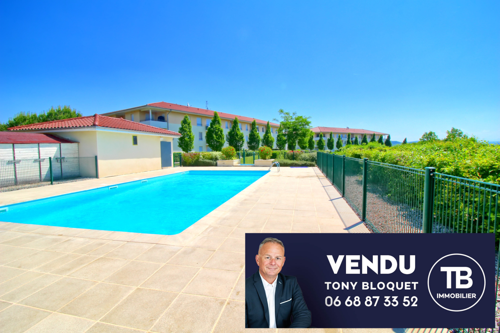 A vendre dans la résidence très convoitée "Le Belvédère", sur les hauteurs de l'Isle d'Abeau (38080), secteur Pierre-Louve, magnifique appartement à l'état neuf de type T2 de 42,79m² au dernier étage (2ème), avec son balcon offrant une vue dégaée sur le parc et 2 places de parking privatives dont une couverte. Séjour / cuisine lumineux de 25m² environ, jolie chambre de 11m², salle de bains et toilettes séparés. Vous profiterez également dans cette magnifique résidence sécurisée d'un superbe parc et d'une belle piscine. Contactez Tony BLOQUET IMMOBILIER au 06 68 87 33 52. Honoraires à la charge du vendeur.