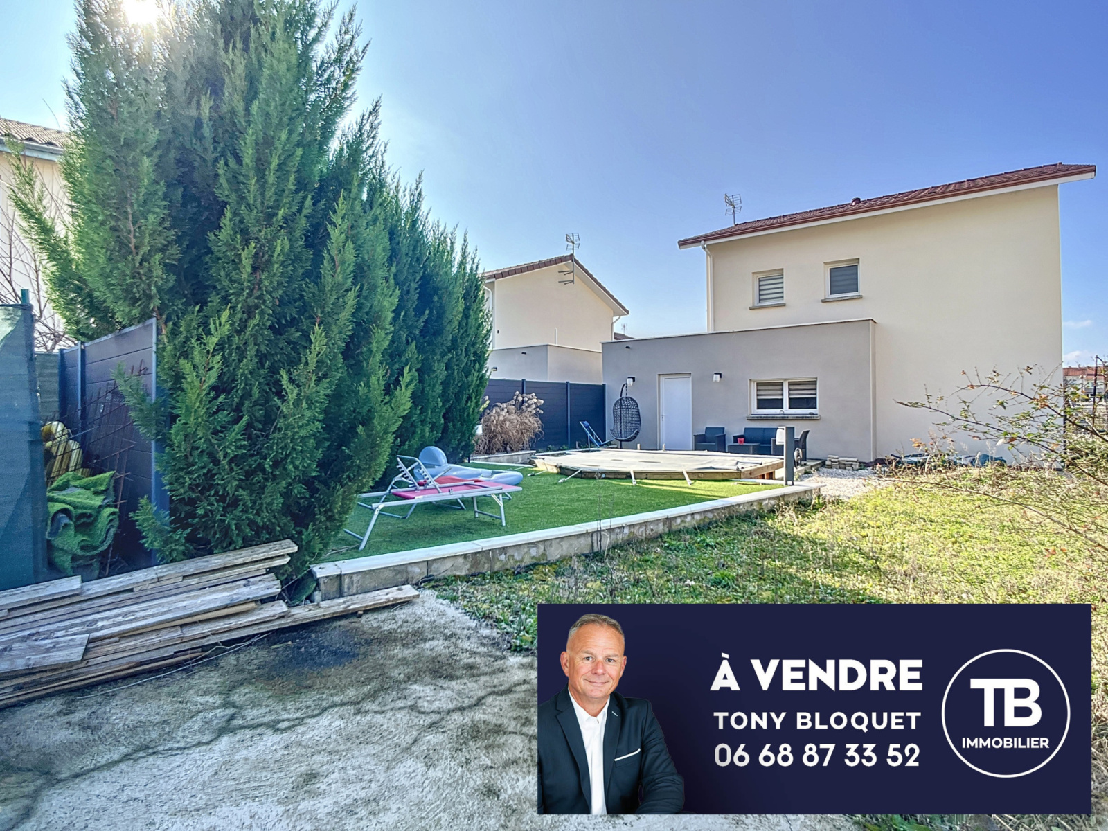 A vendre sur le secteur de "Pierre-Louve" à l'Isle d'Abeau (38080), jolie maison récente comprenant un bel ensemble lumineux séjour / cuisine équipée de 37m² environ, plus un cellier, wc, garage, et à l'étage 3 chambres, grande salle de bains avec baignoire et douche, wc. Terrain clos et arboré de 420m² environ avec une piscine hors-sol enterrée. Très calme et sécurisée. Contactez Tony BLOQUET IMMOBILIER au 06 68 87 33 52.
